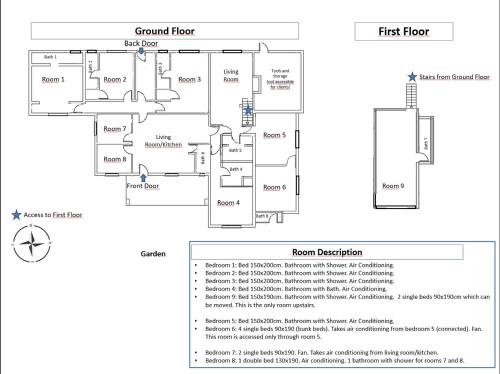 Denne villa med aircondition består af 9 soveværelser, stue, et fuldt udstyret køkken med køleskab og kaffemaskine samt 8 badeværelser med bruser og en hårtørrer. Villaen har håndklæder og sengetøj.