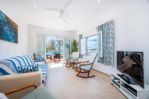 Feriehuset har 2 soveværelser, 2 badeværelser, sengetøj, håndklæder, tv med satellitkanaler, et fuldt udstyret køkken og terrasse med havudsigt.
