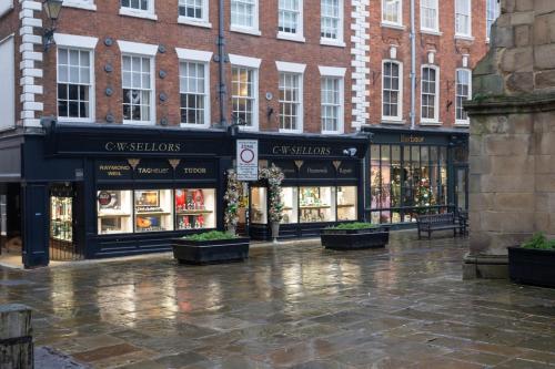 Historic town centre house with secure parking ligger i Shrewsbury, 26 km fra Telford International Centre, 5 minutters gang fra Shrewsbury Cathedral og 8,8 km fra Attingham Park. Overnatningsstedet ligger 26 km fra Ironbridge Gorge. Der er privat parkering på stedet og gratis wi-fi.