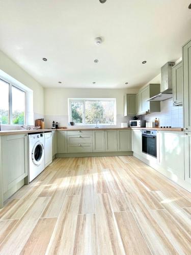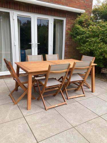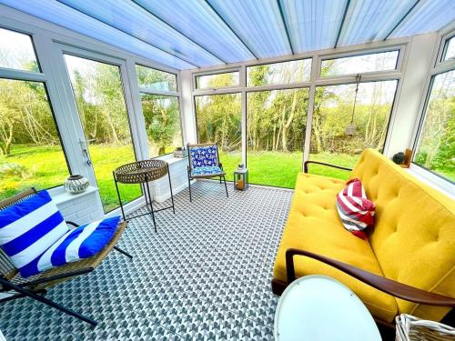 Dette feriehus har terrasse og udsigt til en have og byder på 3 soveværelser, stue, kabel-fladskærms-tv, et veludstyret køkken og 2 badeværelser med bruser og badekar. Feriehuset har håndklæder og sengetøj.