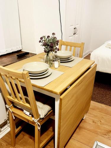Lejligheden har 1 soveværelse, køkken med ovn og mikrobølgeovn, vaskemaskine og 1 badeværelse. Lejligheden har håndklæder og sengetøj.