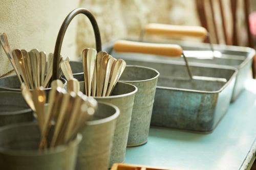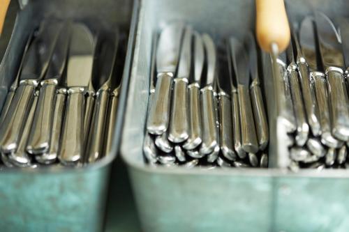 • Alle tallerkener, bestik, glas og lignende er blevet desinficeret