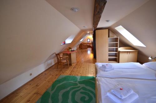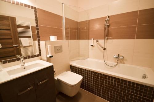 De store flisebadeværelser har badekar og bidet. Hotel U Kozicky har desuden elevator, der giver nem adgang til samtlige værelser.