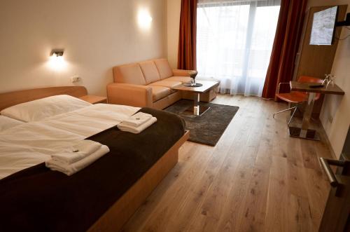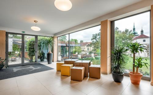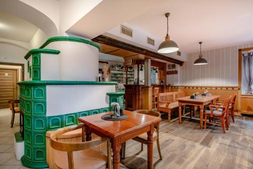 Gæsterne kan spise i restauranten, som har en rummelig terrasse med udsigt over Teplices historiske centrum med slottet, kirkerne og spa-centrene. Der er også en hyggelig hotellounge til afslapning. Saunaen kan benyttes mod tillægsgebyr og skal reserveres på forhånd i receptionen.