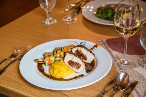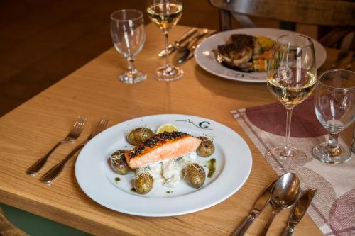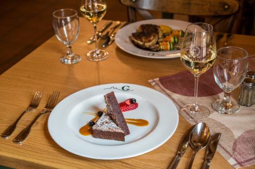 Lunch and dinner from a daily menu is available in the hotel's restaurant.