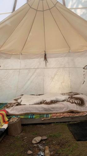 Luksusteltet har håndklæder og sengetøj.