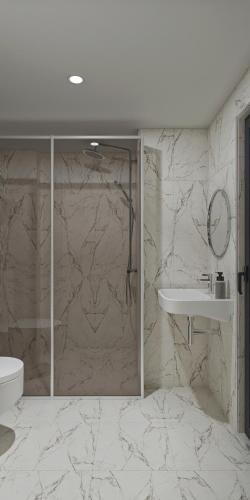 Der er privat badeværelse med bruser samt gratis toiletartikler, en hårtørrer og tøfler i hver enhed.