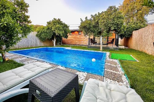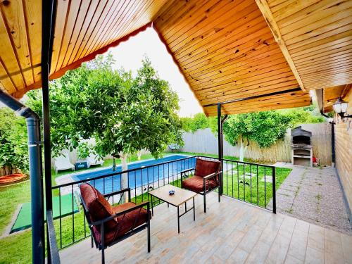 Aden Bungalov ligger ca. 2,6 km fra Akmaz Plajı Strand. Her er udsigt til en have, en udendørs swimmingpool, et fælles opholdsområde og en terrasse. Dette feriehus har privat pool, have, grill, gratis wi-fi og gratis privat parkering.