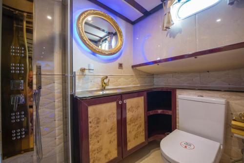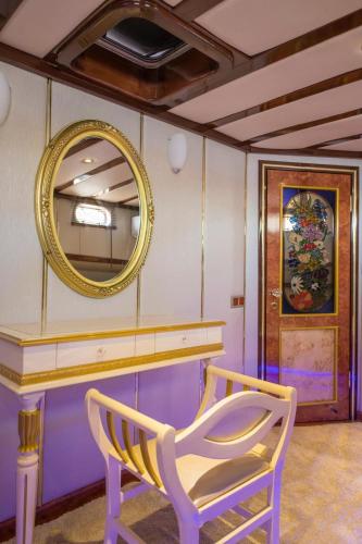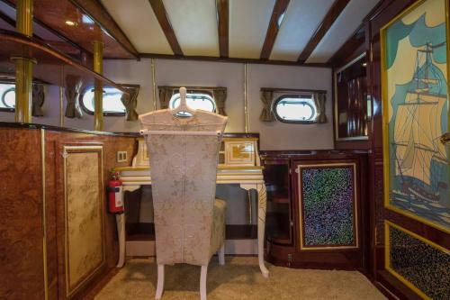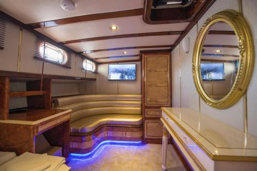 Denne båd med aircondition har 1 soveværelse, fladskærms-tv, spiseplads og køkken med køleskab og stue. Båden har håndklæder og sengetøj.