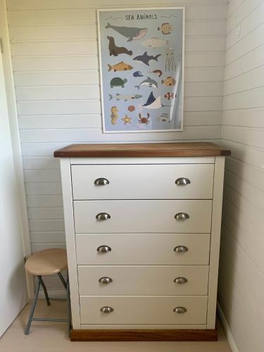 Feriehuset har 2 soveværelser, et fuldt udstyret køkken med et køleskab og en opvaskemaskine samt 1 badeværelse med bruser og en hårtørrer. Her er tv.
