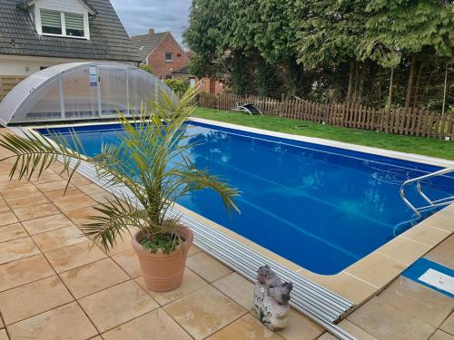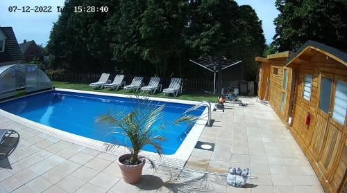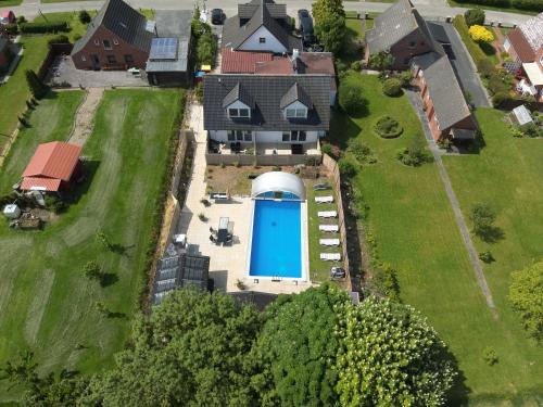 Familie Decker-Behrends ligger i Upleward og tilbyder indkvartering med gratis wi-fi, swimmingpool, en have, en terrasse og udsigt til en have. Overnatningsstedet har sauna.
