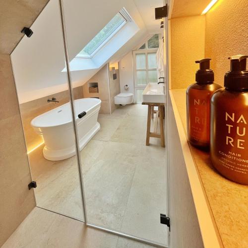 Wellness-området hos feriehuset har sauna og boblebad. TauberChalet - Luxury Wellness Chalet I Natur, Whirlpool & Sauna - Familienfreundlich har en legeplads.