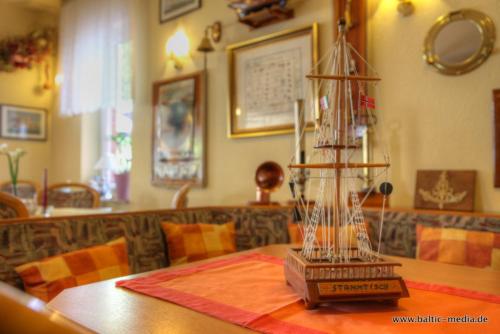 Der serveres morgenbuffet hver dag. Nordtyske specialiteter og drikkevarer kan nydes i restauranten Seekiste eller på terrassen i haven.