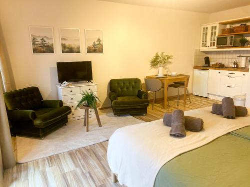 Denne lejlighed har 1 soveværelse, fladskærms-tv med satellitkanaler, et veludstyret tekøkken med køleskab og mikrobølgeovn, og 1 badeværelse med bruser. Lejligheden har håndklæder og sengetøj.