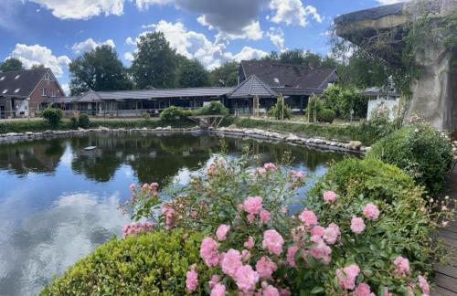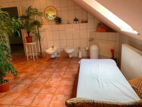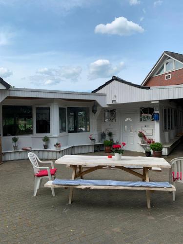 IQBAL-Hütte (die Moorperle) ligger i Beverstedt, 23 km fra Bremerhaven Hauptbahnhof, og har et fitnesscenter, en have og et fælles opholdsområde samt gratis privat parkering. Her er et fælles køkken og roomservice samt gratis wi-fi overalt. Pensionatet har udsigt til en have og terrasse.