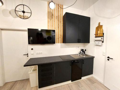 Denne lejlighed består af 1 soveværelse, stue, et fuldt udstyret køkken med køleskab og kaffemaskine samt 1 badeværelse med bruser og gratis toiletartikler. Lejligheden har håndklæder og sengetøj.