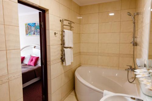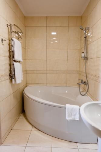 Gæsterne kan slappe af i den finske sauna og køle af i en lille opvarmet swimmingpool med baggrundsbelyst vandfald. Ture til Lvivs slotte og den gamle bydel kan arrangeres i den døgnåbne reception.