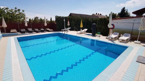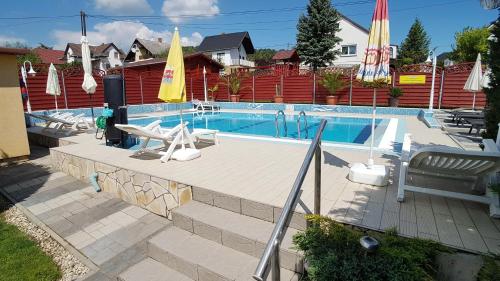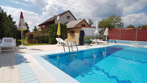 Holiday House Maya ligger i Vonyarcvashegy med udsigt til byen. Her er en sæsonåben udendørs swimmingpool, en have og en terrasse. Der er også gratis wi-fi. Dette overnatningssted har bjergudsigt og en balkon.
