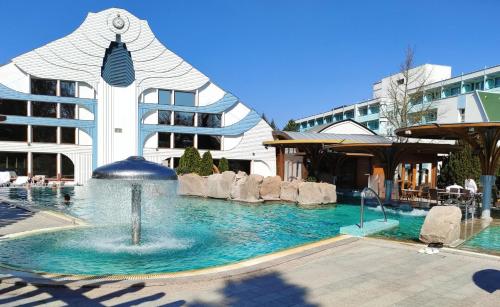 Hos Spa Residence Carbona EmDoNa Luxury Apartment i Hévíz er der udsigt til byen, en udendørs swimmingpool, en have, en terrasse, en restaurant og en bar. Lejlighedshotellet har både gratis wi-fi og privat parkering.