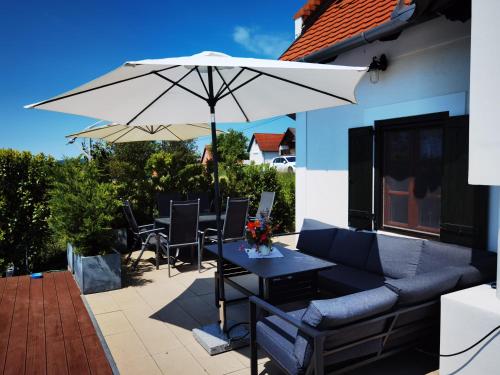Panorama, Balaton ligger i Dörgicse med bjergudsigt. Her er en sæsonåben udendørs swimmingpool, en have og en terrasse. Der er også gratis wi-fi. Dette overnatningssted privat pool og gratis privat parkering.