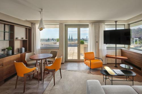 Apart from boasting spectacular river views, the rooms offer an extraordinary combination of style, innovation and comfort, featuring ergonomically designed furniture. All rooms have been refurbished in 2018 with the latest Marriott design: hardwood floors, a flat-screen TV with satellite channels, a connect-your-device option, USB outlets and video streaming.
