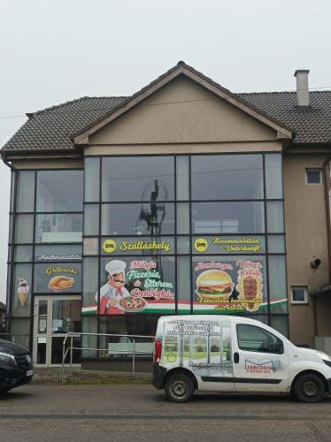 Mátyás Pizzéria, Étterem és Vendégház ligger i Balkány, 38 km fra Főnix Hall. Her en have og en terrasse samt gratis wi-fi overalt. Der er desuden røgfrie værelser. Overnatningsstedet ligger ca. 39 km fra Debrecen Zoo and Amusement Park, 40 km fra Aquaticum Mediterrán Élményfürdő og 40 km fra Déri Museum. Nagyerdei Stadion ligger 39 km fra pensionatet, og Csokonai Theatre er 41 km derfra.