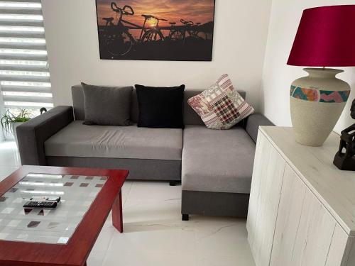 Denne lejlighed med aircondition består af 2 soveværelser, stue, et fuldt udstyret køkken med køleskab og kaffemaskine samt 1 badeværelse med bruser. Her er fladskærms-tv med kabelkanaler.
