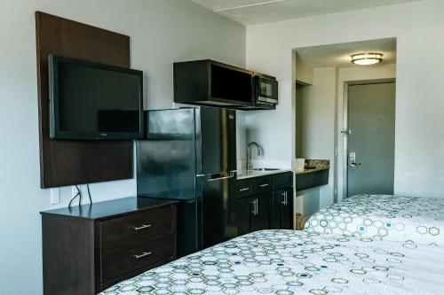 Værelserne hos motellet har fladskærms-tv med kabelkanaler og et tekøkken. Det private badeværelse har bruser og gratis toiletartikler. Alle enhederne har et køleskab.