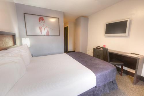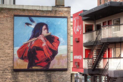 Værelserne har hvide vægge med lyse røde detaljer og moderne kunst. Samtlige værelser på Hotel Ruby har mikroovn og lille køleskab.