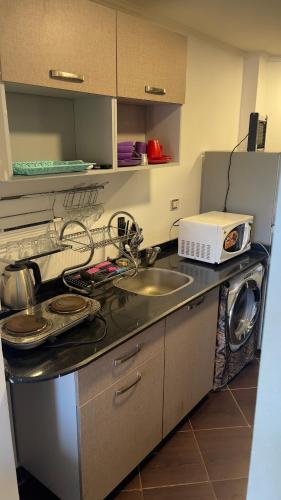 Diese Ferienwohnung mit Klimaanlage besteht aus 1 Schlafzimmer, einem Wohnzimmer, einer voll ausgestatteten Küchenzeile mit einem Kühlschrank und einem Wasserkocher sowie 1 Badezimmer mit einer Dusche und einer Badewanne. Es gibt einen Flachbild-TV mit Satellitenkanälen.
