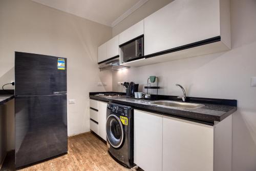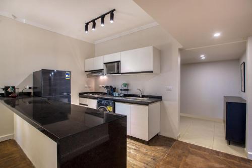 Diese Ferienwohnung mit Klimaanlage besteht aus 1 separaten Schlafzimmer, einer voll ausgestatteten Küche mit einem Kühlschrank und einer Herdplatte sowie 2 Badezimmern.