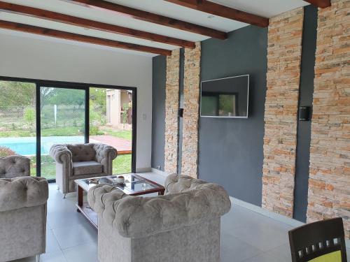 Die Unterkunft Casa de vacaciones Vaqueros verfügt über Bergblick und Übernachtungsmöglichkeiten mit einem Außenpool und einer Veranda / Patio, ungefähr 12 km von Bahnhof Tren a las Nubes entfernt. Dieses Ferienhaus bietet einen eigenen Pool, einen Garten und einen kostenlosen Privatparkplatz.