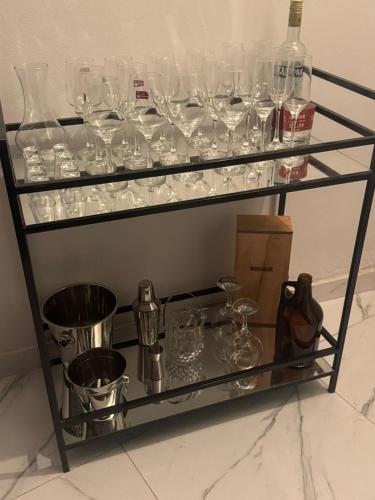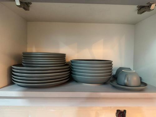 Dieses Ferienhaus mit Klimaanlage ist eingerichtet mit 2 Schlafzimmern, Flachbild-TV und einer Küche mit einem Kühlschrank und einem Ofen In diesem Ferienhaus werden Handtücher und Bettwäsche angeboten.