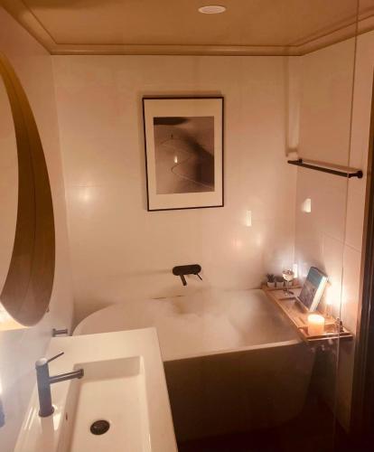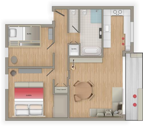 Diese Ferienwohnung verfügt über einen Blu-ray-Player, hat eine Küche mit einem Kühlschrank, einem Geschirrspüler und einem Ofen, ein Wohnzimmer mit einem Sitzbereich und einem Essbereich, 2 Schlafzimmer und 2 Badezimmer mit einer Dusche und einer Badewanne. Es gibt einen Flachbild-TV mit Satellitenkanälen, einen DVD-Player sowie einen CD-Player und eine iPod-Dockingstation.