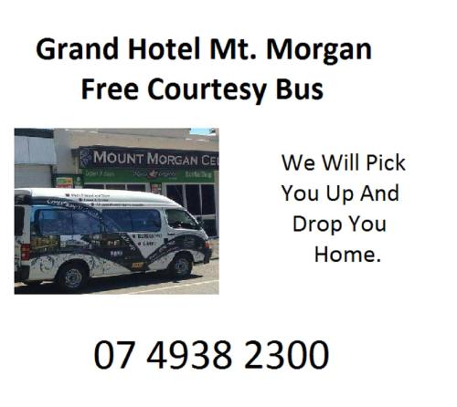 Die Unterkunft verfügt über eine Bar Grand Hotel Mount Morgan und Zimmer in Mount Morgan, 37 km von Rockhampton Zoo und 38 km von Rockhampton Botanic Gardens entfernt. Dieses Hotel mit 3 Sternen besticht durch eine Terrasse und klimatisierte Zimmer mit kostenlosem WLAN, jedes mit einem eigenen Badezimmer. Die Unterkunft bietet eine Abendunterhaltung und einen Geldautomaten.