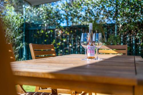 Dieses Ferienhaus mit Klimaanlage besteht aus 2 Schlafzimmern, einem Wohnzimmer, einer voll ausgestatteten Küche mit einem Kühlschrank und einer Kaffeemaschine sowie 1 Badezimmer mit einer Dusche und kostenlosen Pflegeprodukten. In diesem Ferienhaus werden Handtücher und Bettwäsche angeboten.