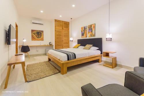 Die Wohneinheiten in der Unterkunft L'imprévu L'annexe verfügen über Klimaanlage, einen Sitzbereich, einen Flachbild-TV mit Satellitenkanälen, einen Safe und ein eigenes Badezimmer mit einer Dusche, kostenlosen Pflegeprodukten und einem Haartrockner. In der Unterkunft L'imprévu L'annexe sind die Zimmer ausgestattet mit Bettwäsche und Handtüchern.