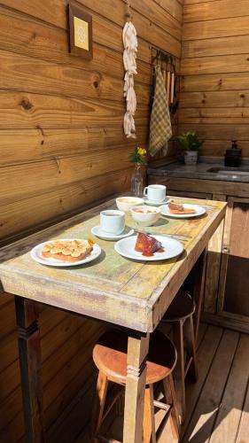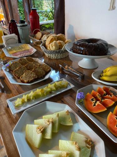 Ein als Buffet angebotenes Frühstück wird in der Unterkunft Pousada Paradise Ferrugem angeboten.