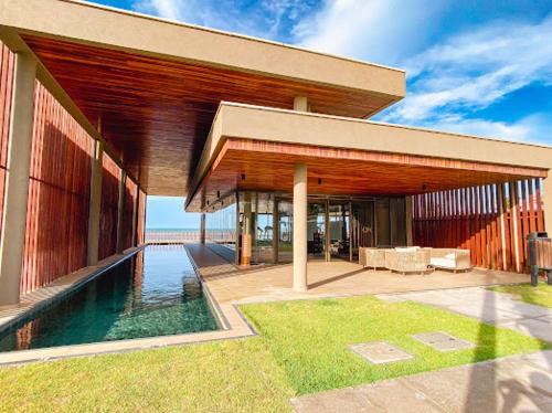 Gelegen in Flecheiras, nur 100 m von Strand Praia de Flexeiras entfernt, bietet die Unterkunft Flecheiras The House - Casa beira mar com piscina privativa em condomínio direkt am Strand Übernachtungsmöglichkeiten mit einem Außenpool, einem Garten, einer Gemeinschaftslounge und kostenlosem WLAN. Dieses Ferienhaus bietet einen kostenlosen Privatparkplatz und einen Zimmerservice.