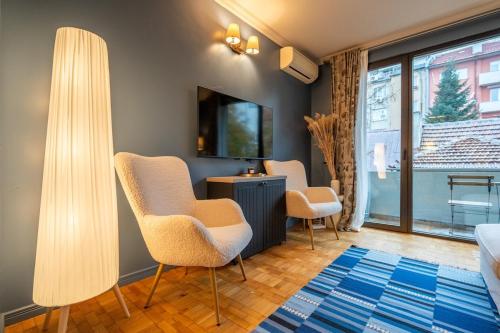 Die Unterkunft Stylish 2 BDRM Apt at NDK, gelegen im Zentrum von Sofia, 300 m von Nationaler Kulturpalast und 1,5 km von U-Bahnhof Vasil Levski Stadion entfernt, bietet kostenloses WLAN. Diese Ferienwohnung ist 2,7 km von St.-Kliment-Ohridski-Universität Sofia und 2,9 km von Park Borisowa Gradina entfernt.