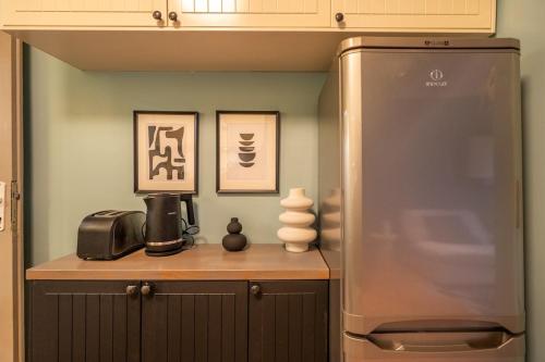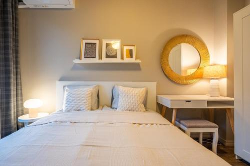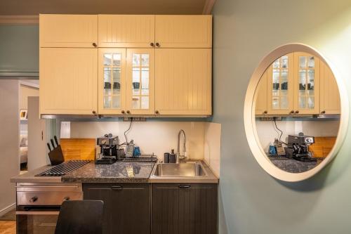 Diese Ferienwohnung mit Klimaanlage ist ausgestattet mit 1 Schlafzimmer, Flachbild-TV und einer Küche mit einem Kühlschrank und einem Ofen In dieser Ferienwohnung werden Handtücher und Bettwäsche zur Verfügung gestellt.
