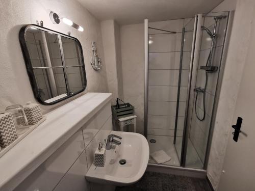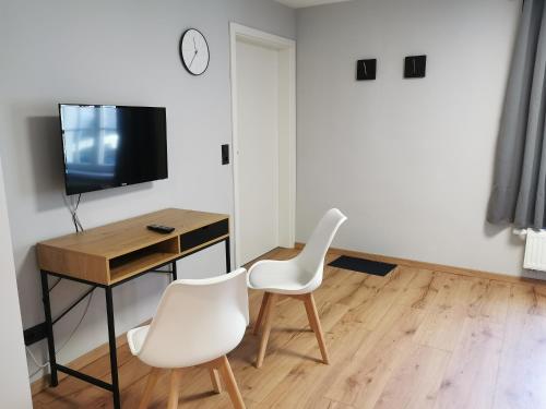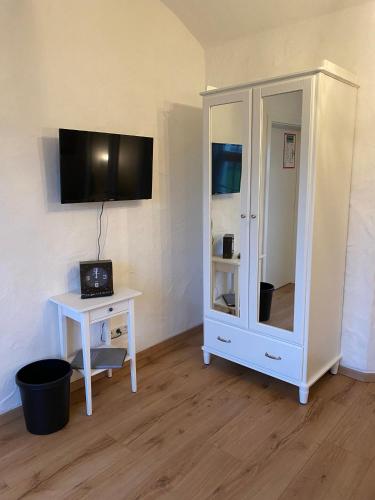 Die Unterkunft Gästehaus Vergissmeinnicht bietet einen Sitzbereich mit einem Flachbild-TV sowie ein eigenes Badezimmer mit einem Haartrockner und einer Dusche.
