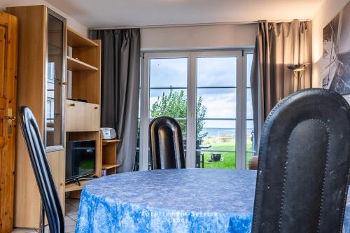 Diese Ferienwohnung mit einer Terrasse und Meerblick hat 1 Schlafzimmer, ein Wohnzimmer, einen TV, eine gut ausgestattete Küche mit einem Kühlschrank und einem Geschirrspüler sowie 1 Badezimmer mit einer Dusche.