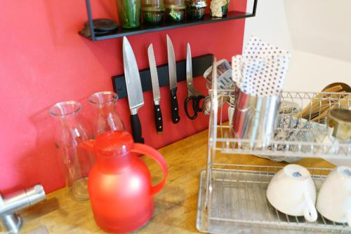 Diese Ferienwohnung verfügt über 2 Schlafzimmer und eine Küche mit einem Kühlschrank, einem Ofen sowie einer Kaffeemaschine. In dieser Ferienwohnung werden Handtücher und Bettwäsche angeboten.