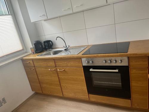 Diese Ferienwohnung mit einem Balkon und Gartenblick bietet 1 Schlafzimmer, ein Wohnzimmer, einen Flachbild-TV, eine gut ausgestattete Küche mit einem Kühlschrank und einem Ofen sowie 1 Badezimmer mit einer Dusche. In dieser Ferienwohnung werden Handtücher und Bettwäsche zur Verfügung gestellt.