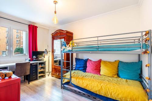 Die Unterkunft GuestReady - Modern Comfort in Vincennes ist ausgestattet mit 3 Schlafzimmern, einer Küche mit einem Kühlschrank und einem Ofen, einer Waschmaschine und 2 Badezimmern. In dieser Ferienwohnung werden Handtücher und Bettwäsche angeboten.
