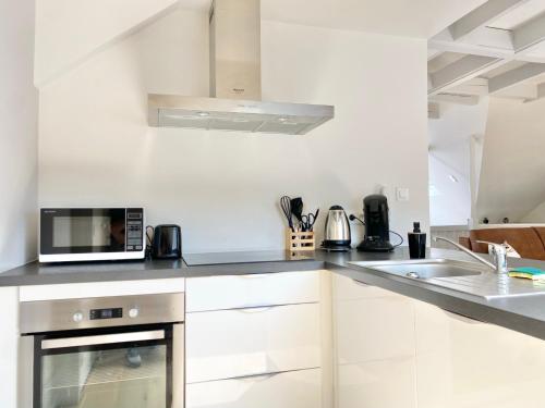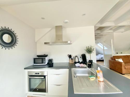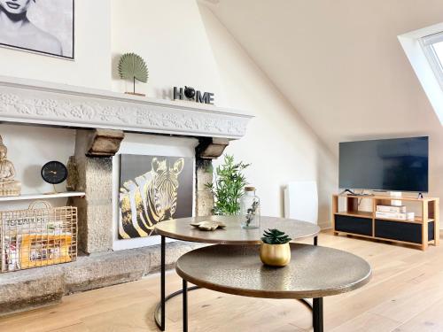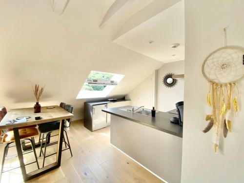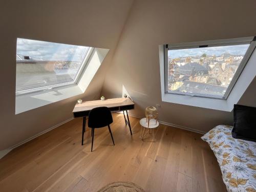 Die Unterkunft LE NID DES QUAIS - Vue Panoramique au cœur de la ville - Wifi - Entrée autonome mit Gartenblick befindet sich in Quimper, 900 m von Bahnhof Quimper und 80 m von Musée Départemental Breton entfernt. Mit Stadtblick und Flussblick bietet diese Ferienwohnung den Gästen außerdem kostenloses WLAN.