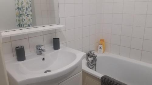Diese Ferienwohnung besteht aus 1 Schlafzimmer, einem Wohnzimmer, einer voll ausgestatteten Küche mit einem Kühlschrank und einer Kaffeemaschine sowie 1 Badezimmer mit einer Badewanne und kostenlosen Pflegeprodukten. In dieser Ferienwohnung werden Handtücher und Bettwäsche zur Verfügung gestellt.