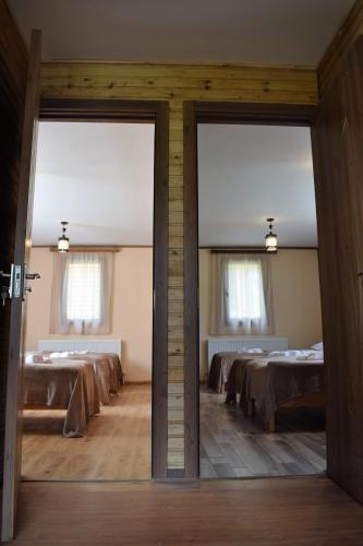 Gelegen in Kazbegi, 48 km von Republik-Stadion Spartak entfernt, bietet die Unterkunft Gergeti Woods Übernachtungsmöglichkeiten mit einem Garten, kostenlosem WLAN, einer Gemeinschaftsküche und einer rund um die Uhr besetzten Rezeption. Dieses Ferienhaus bietet einen kostenlosen Privatparkplatz und einen Tourenschalter.