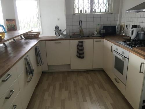 Diese Ferienwohnung befindet sich im Erdgeschoss und ist versehen mit 1 Schlafzimmer, einem Flachbild-TV und einer voll ausgestatteten Küche, die den Gästen einen Kühlschrank, einen Geschirrspüler, eine Waschmaschine, einen Ofen sowie eine Mikrowelle bietet. In dieser Ferienwohnung werden Handtücher und Bettwäsche zur Verfügung gestellt.
